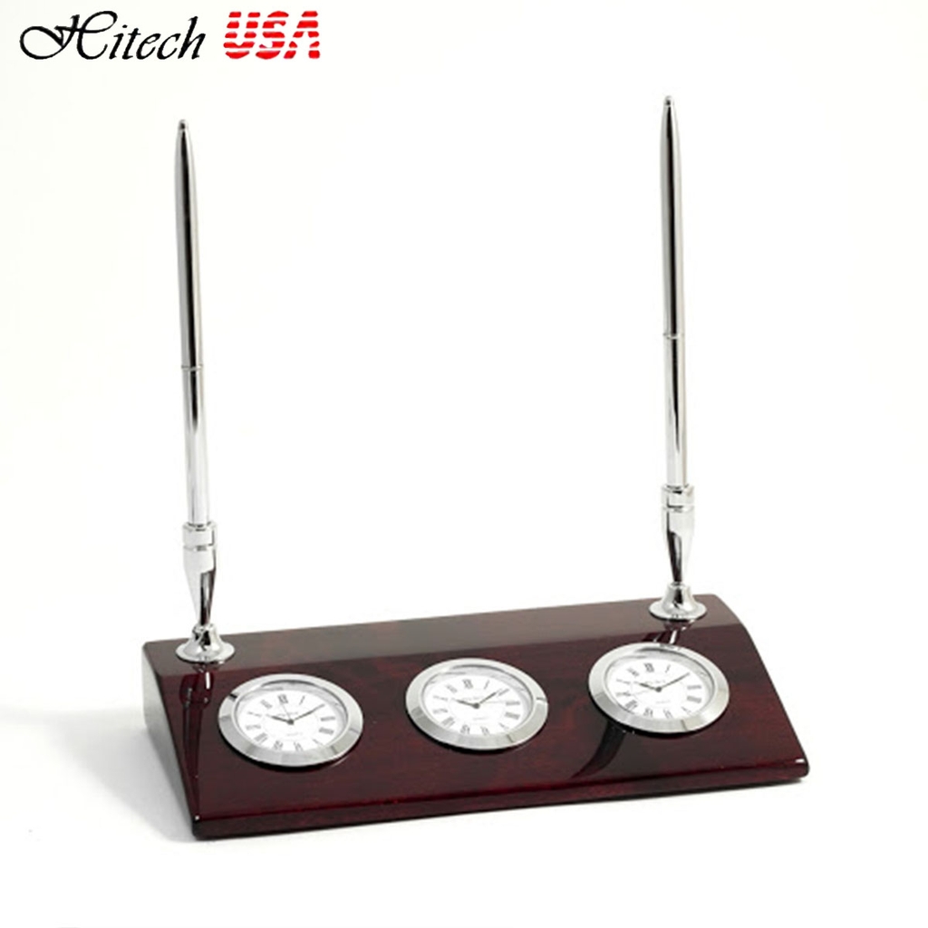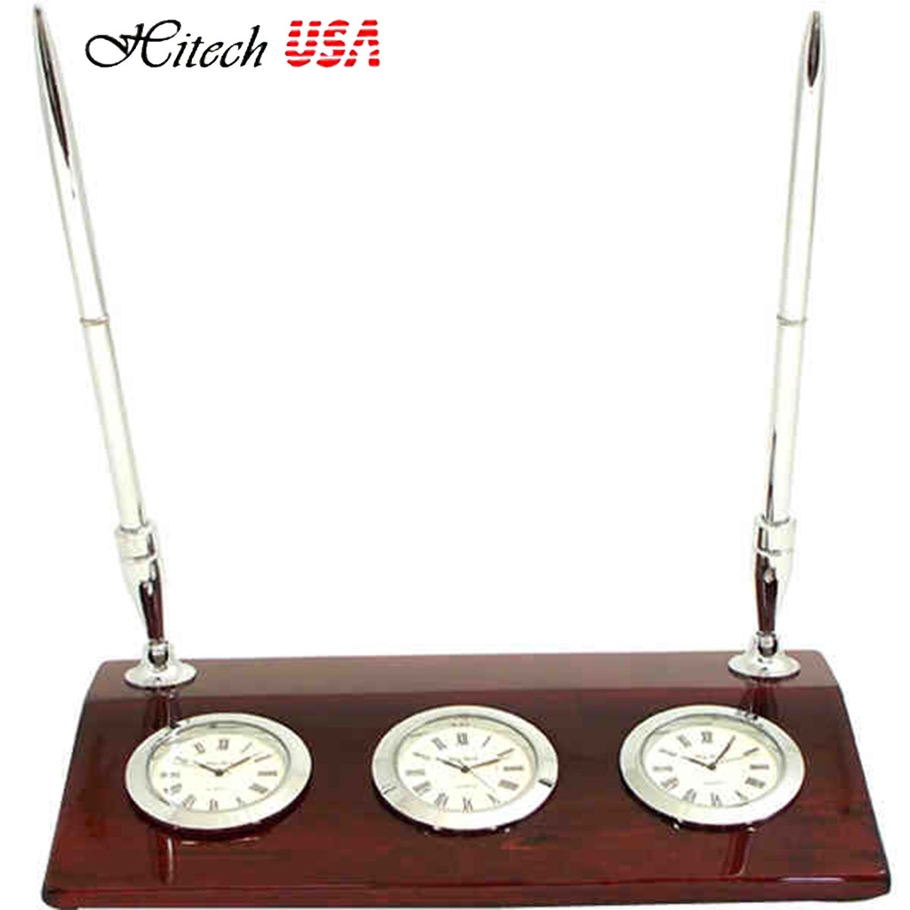 Đồng hồ bàn với 3 sự lựa chọn cho các múi giờ khác nhau, kèm thêm 2 cây bút rất trang nhã.