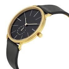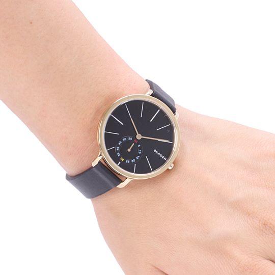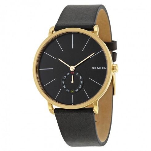 Skagen Thiết kế thời trang, sang trọng, tính năng và độ bền đó là giá cả phải chăng . Đây là đồng hồ cho nữ từ các bộ sưu tập Hagen có dây đeo bằng da màu đen và số màu đen.