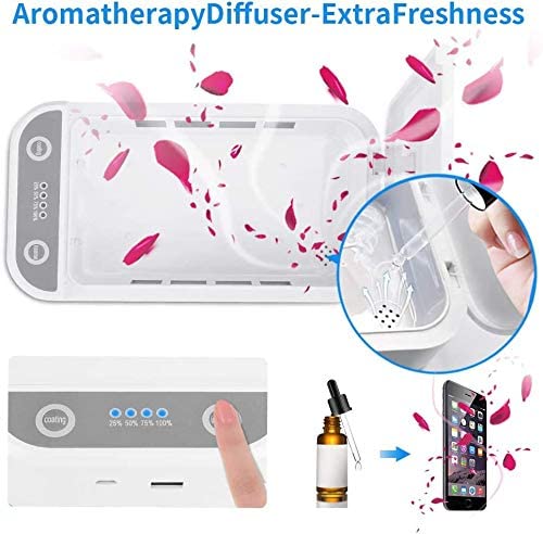 -Chức năng trị liệu bằng hương thơm- Không chỉ chất khử trùng điện thoại di động có thể giữ cho vật dụng của bạn không có mầm bệnh, mà cả máy khử trùng uv hoạt động giống như một máy khuếch tán hương liệu. Chỉ cần thêm vài giọt hương thơm yêu thích của bạn vào bên trong, điện thoại của bạn sẽ được làm mới trong khi vệ sinh.